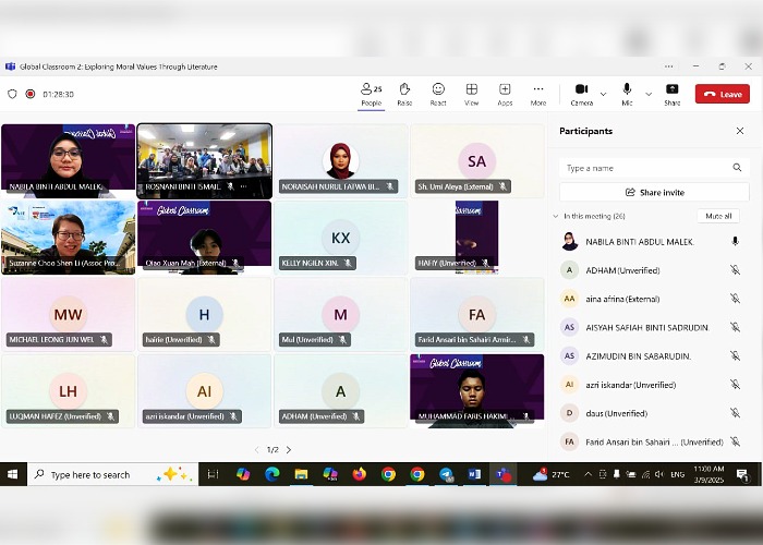 Under the supervision of three language teachers, namely Rosnani Ismail, Nabila Abdul Malek, and Noraisah Nurul Fatwa Mohd Razali, 70 students from sections RE01, RP01, and RP02 participated actively in the session. While one section joined via live streaming from the Global Classroom studio, the other two sections participated via online.