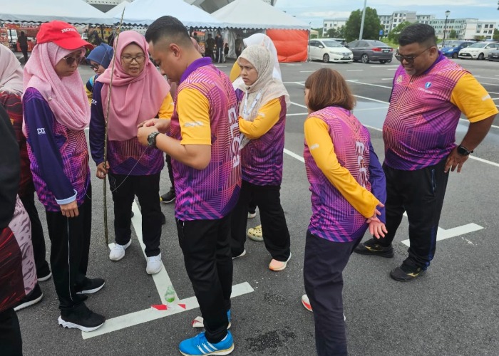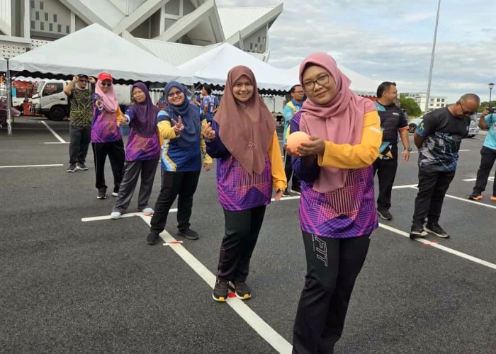 Meninggalkan seketika rutin kerja dan papan putih, warga PBM menyarung pakaian sukan dan turun ke padang. Mereka beraksi bukan dengan komputer riba, namun dengan kelapa, belon air dan tali.